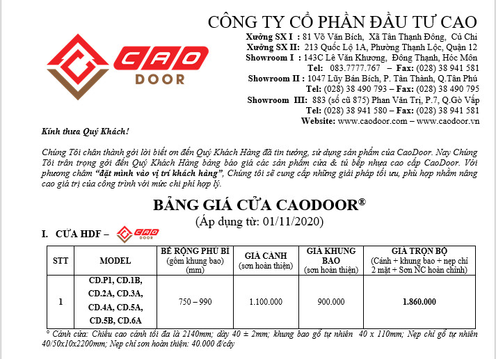 Hiện tại giá cửa gỗ công nghiệp HDF chỉ mang tính chất tham khảo. Giá còn có thể thay đổi theo từng công trình.